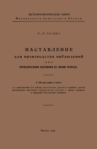 : Вадим Ершов... Владислав_72, звездочет... СПИСОК НЕКОТОРЫХ ИЗДАНИЙ НА РУССКОМ ЯЗЫКЕ: * Здановский И.А._ Наставление для производства наблюдений над периодическими явлениями из жизни природы.(1925) - Скан, обработка, формат Pdf: Владислав_72; Доработка, формат Pdf: звездочет, 2025; |