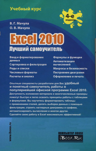ИЗ ИЗДАНИЯ: В четвертом издании книги рассмотрена последняя версия популярнейшего редактора электронных таблиц - Microsoft Excel 2010. На многочисленных примерах показаны возможности форматирования таблиц, расчеты с использованием обширного арсенала функций, выборка данных с помощью фильтрации, построение диаграмм и графиков. Рассмотрены методы автоматизации вычислений в электронных таблицах с помощью макросов и элементов управления и многое другое. |